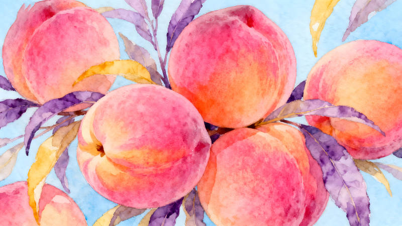 水彩画风的粉色水蜜桃