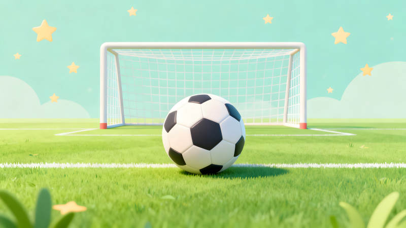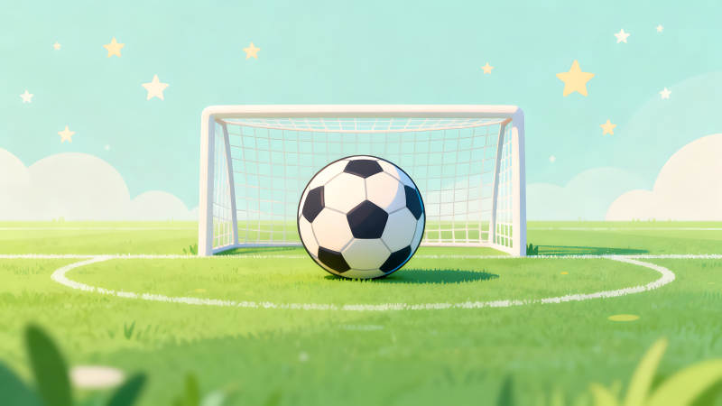 足球场卡通场景蓝天绿草足球