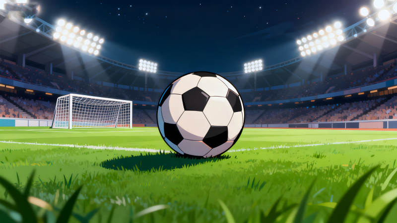 夜晚球场足球特写