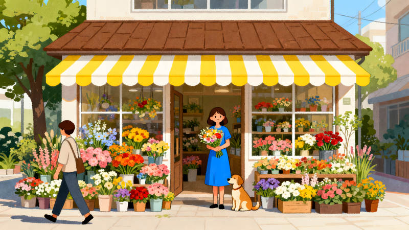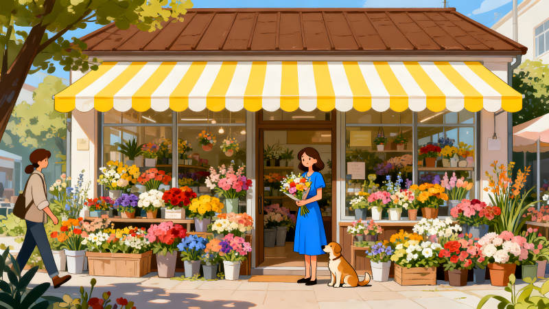花店门口的温馨景象