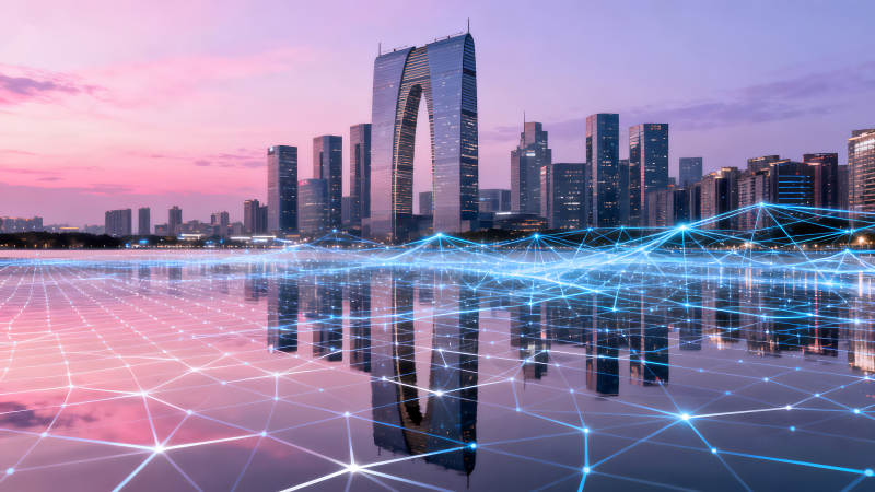 城市夜景与科技网络连接