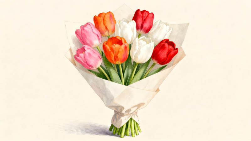 一束色彩鲜艳的郁金香