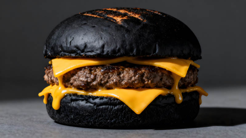 黑色汉堡包搭配融化芝士