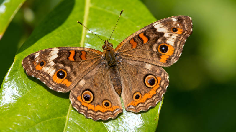 蝴蝶栖息在绿叶上颜色鲜艳