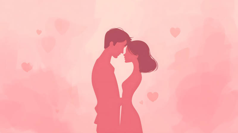 情侣拥抱温馨浪漫粉色背景