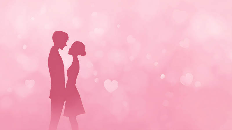 浪漫爱情剪影粉色背景图