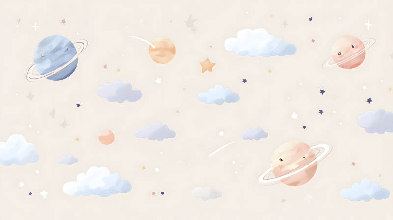 卡通宇宙图案包含星星云朵和行星