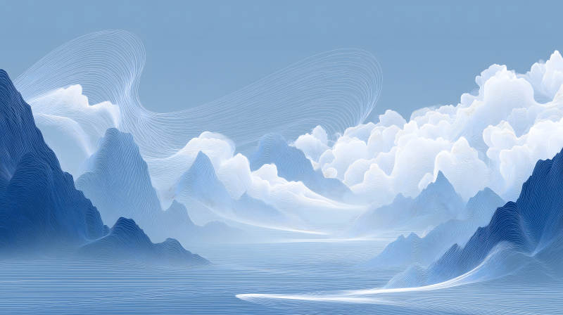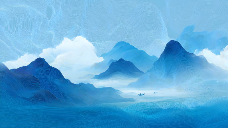 蓝色山水画意境优美