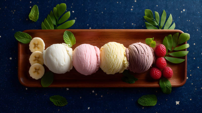 冰淇淋与水果的美味搭配