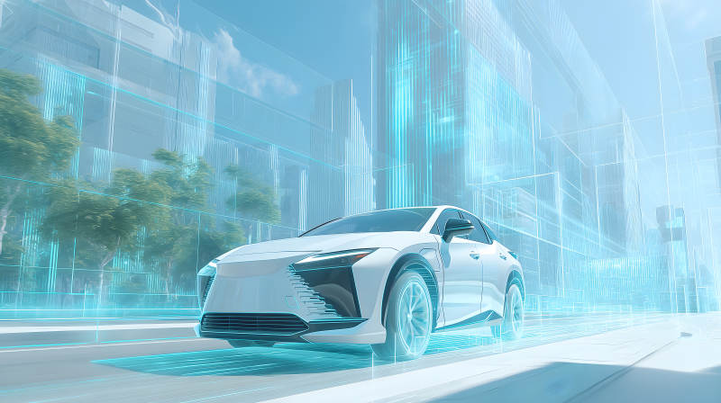 未来科技感汽车行驶在城市道路上