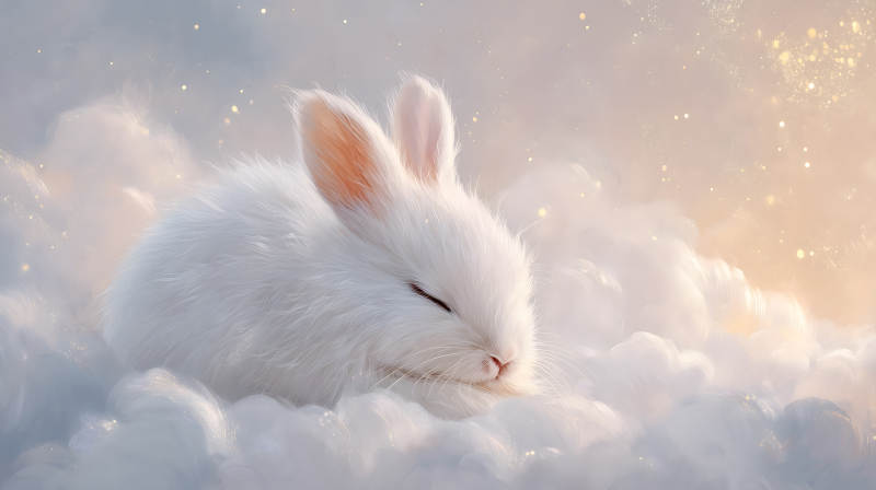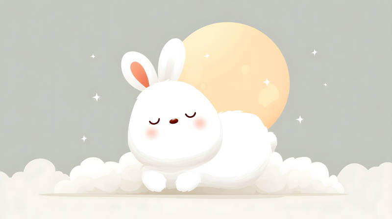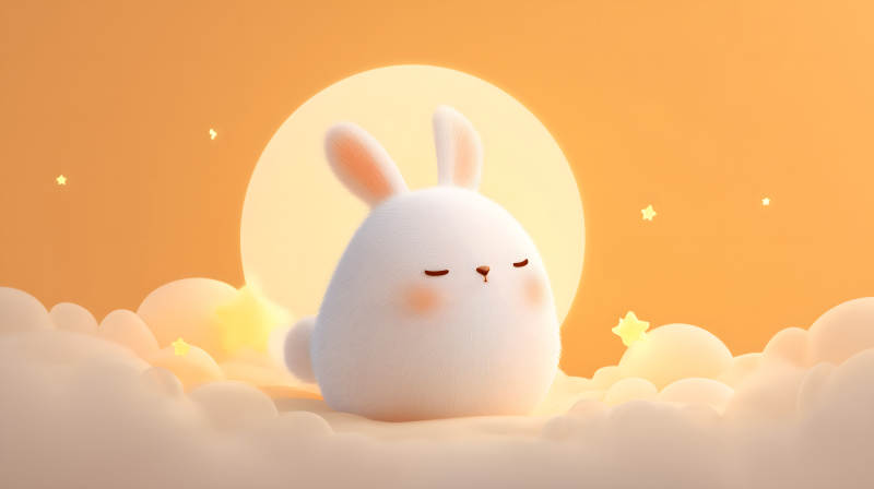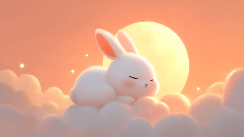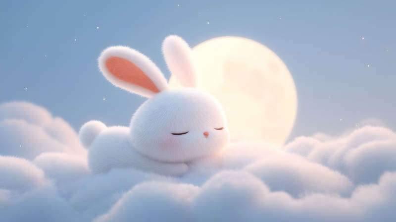 可爱兔子云端安睡月光下
