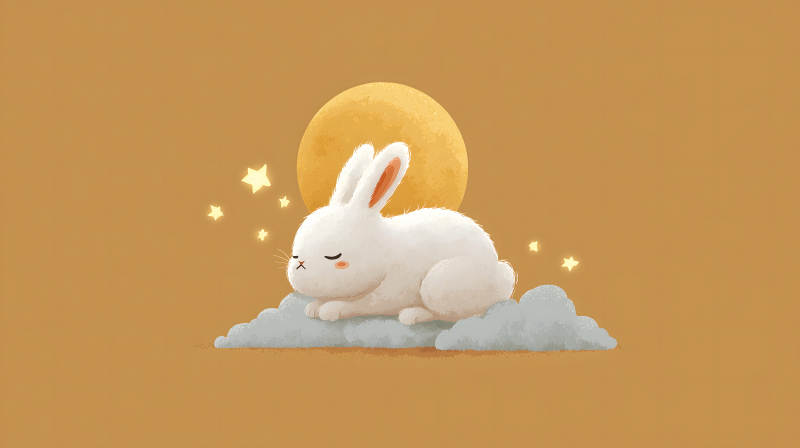 兔子在月亮和星星的陪伴下入睡