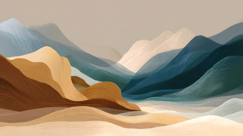 抽象风景画简约山峦线条