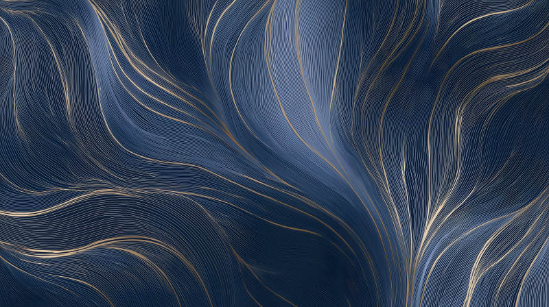 蓝金线条流动抽象艺术