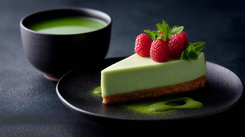 抹茶芝士蛋糕配覆盆子