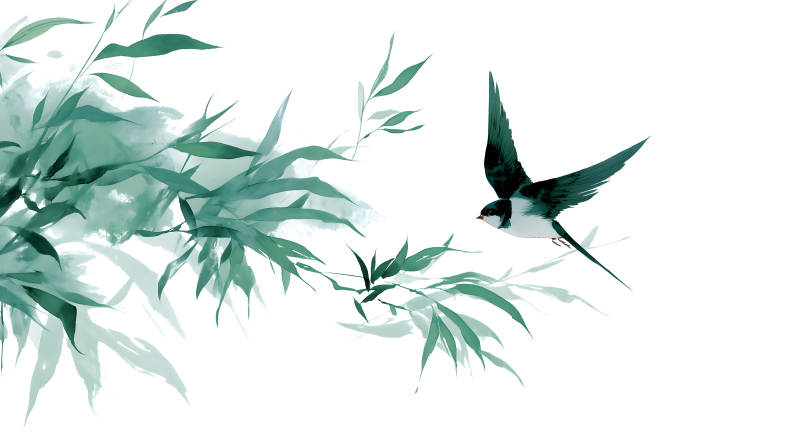 水墨风格的飞鸟和竹叶