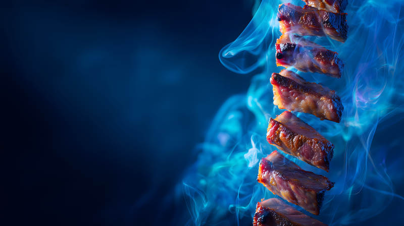 烤肋排与蓝烟雾的艺术摄影