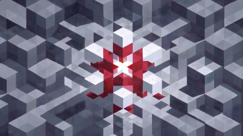 几何图形构成抽象图案红色点缀