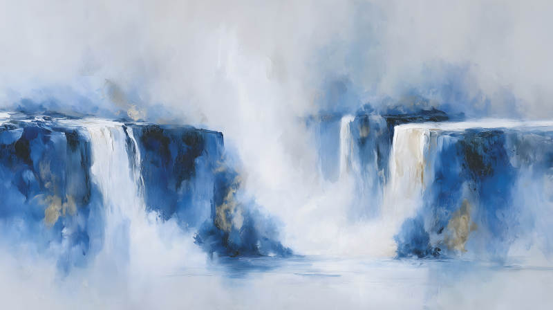 瀑布水流的抽象画作蓝白相间