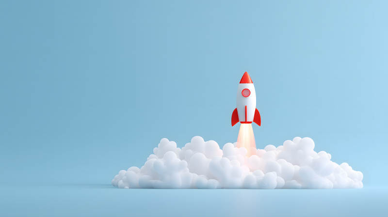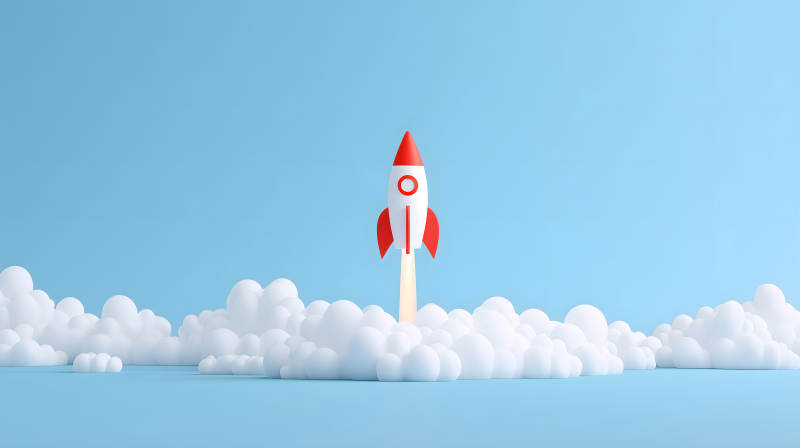 火箭发射升空蓝天白云背景