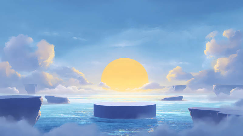 海上平台阳光照耀奇幻天空
