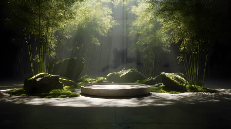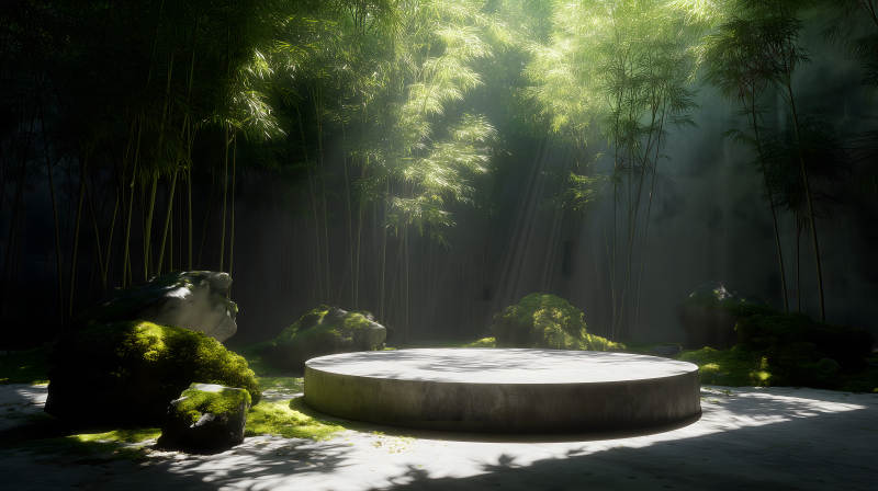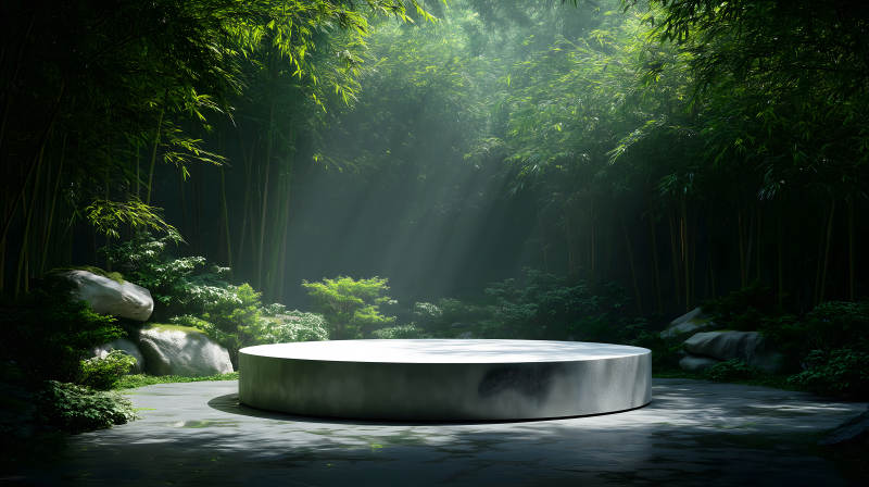 竹林深处的光束下方的圆形展示台