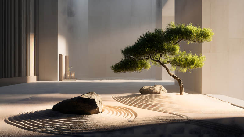 宁静禅意空间小树景观
