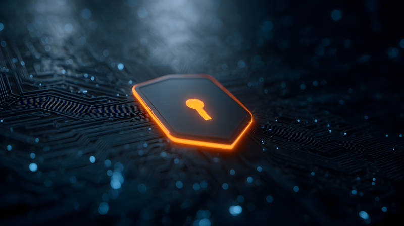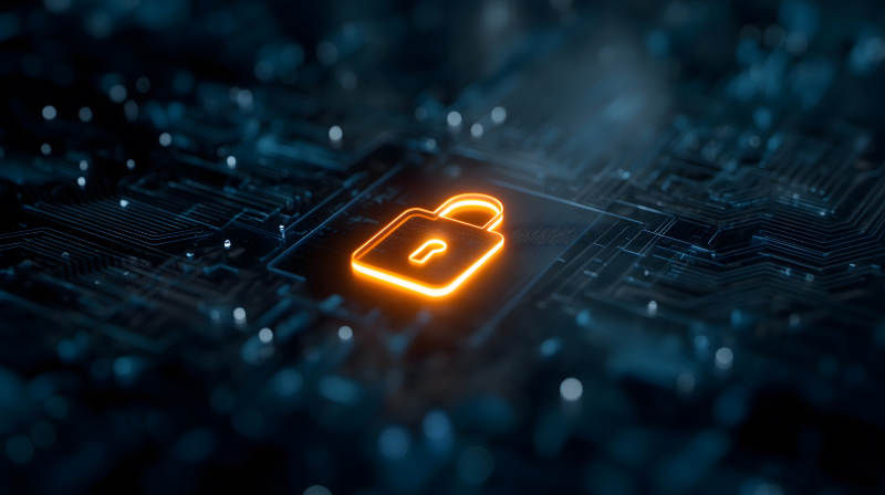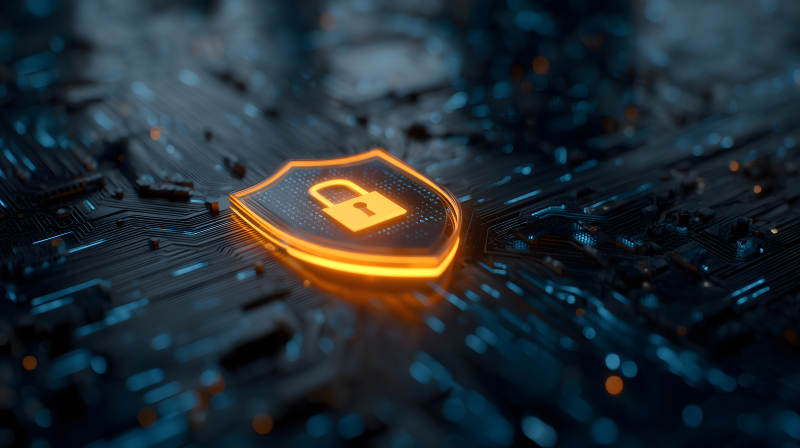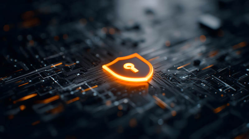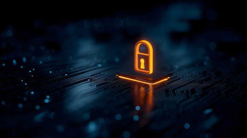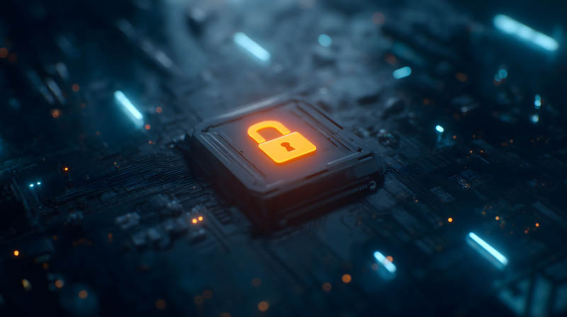 电路板上的发光锁形图标象征安全保护