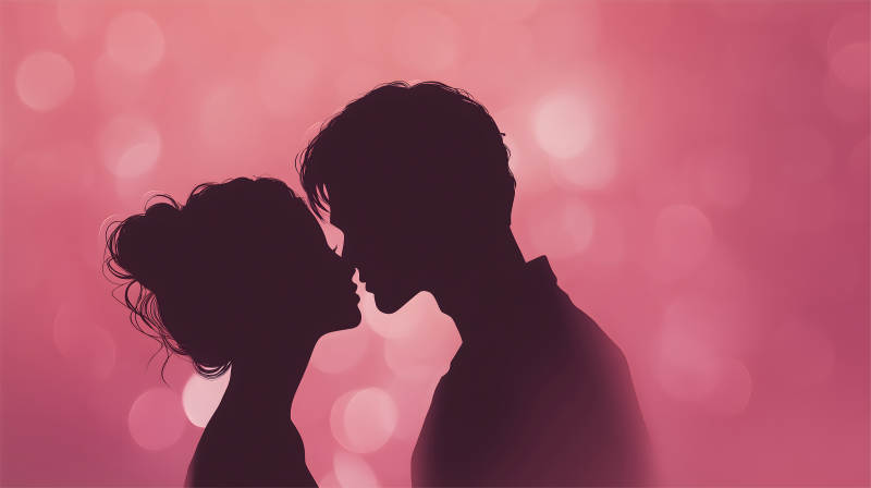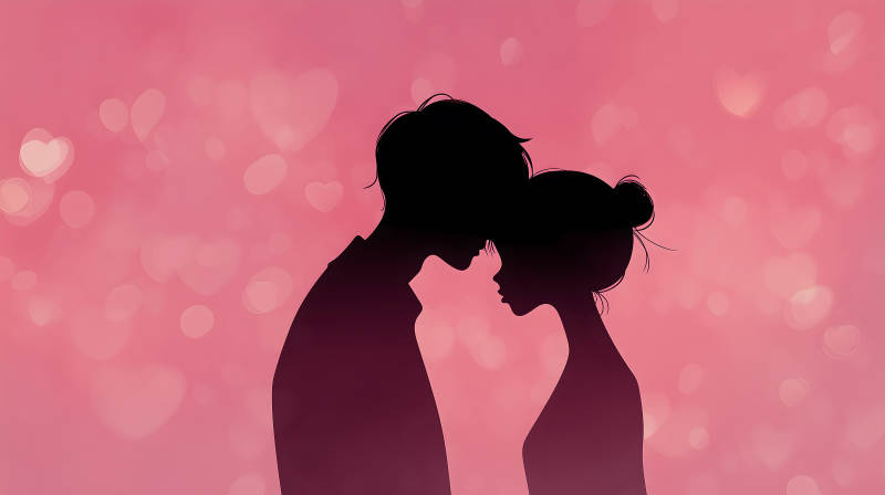 情侣相拥在粉色背景下
