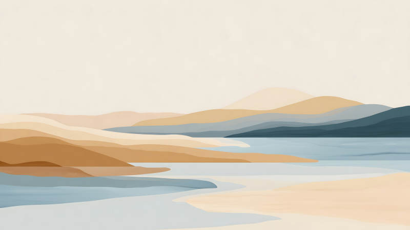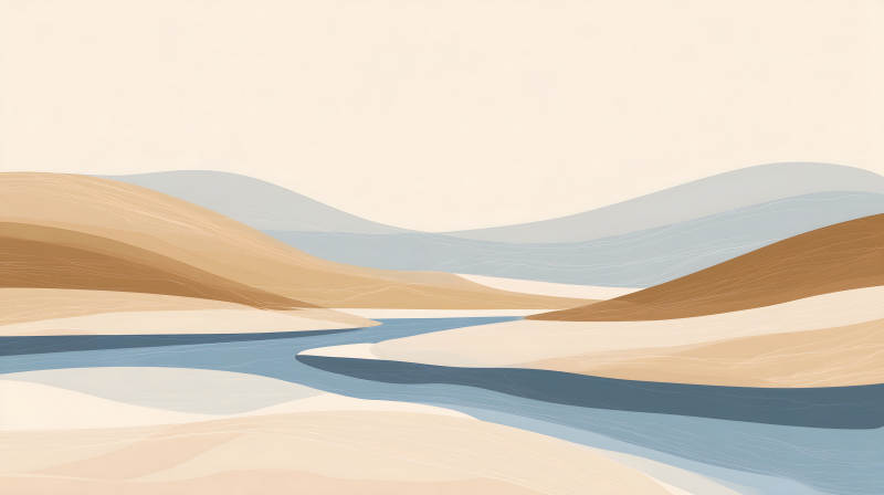 抽象山水画蓝河贯穿大地