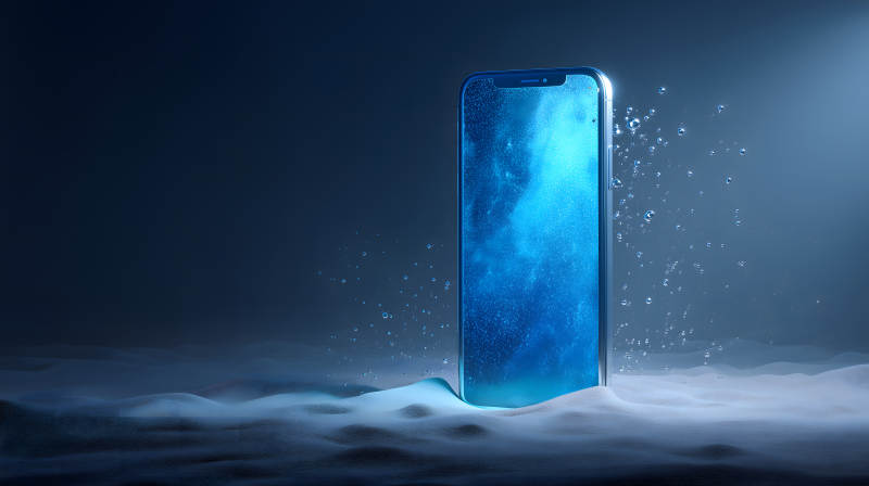 手机置于水下蓝色梦幻场景