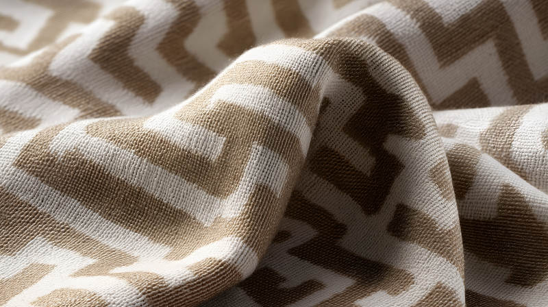 米色和白色几何编织面料特写