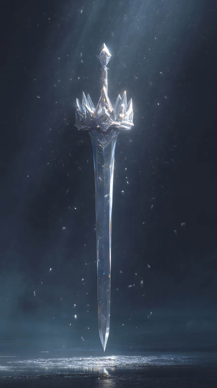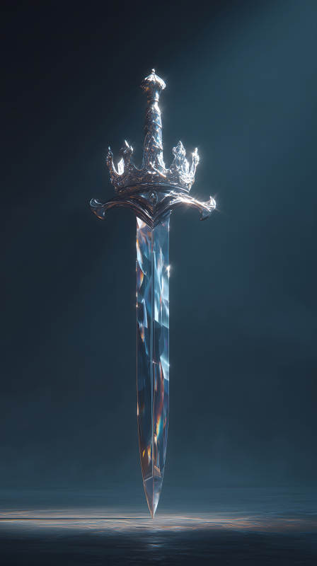 一把镶嵌王冠的华丽水晶剑