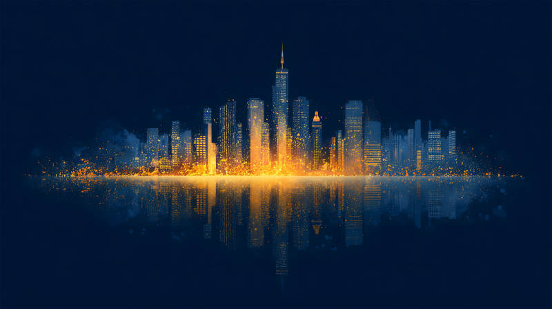 金色城市剪影夜景
