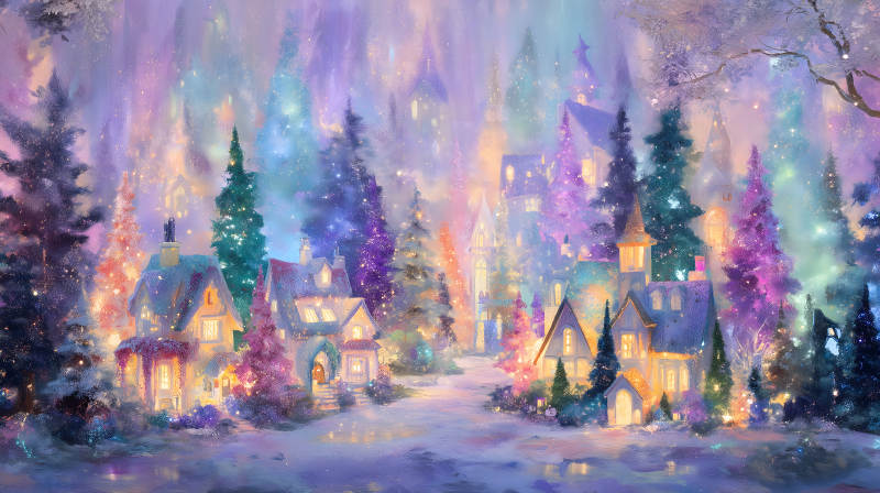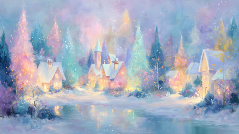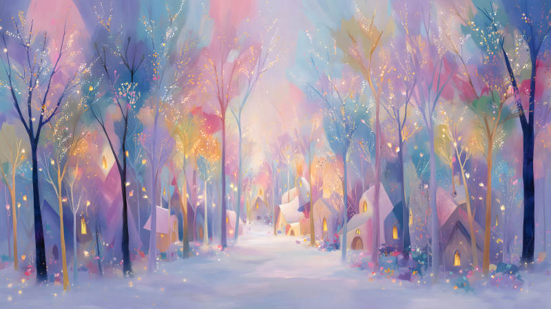 梦幻冬日小镇景象