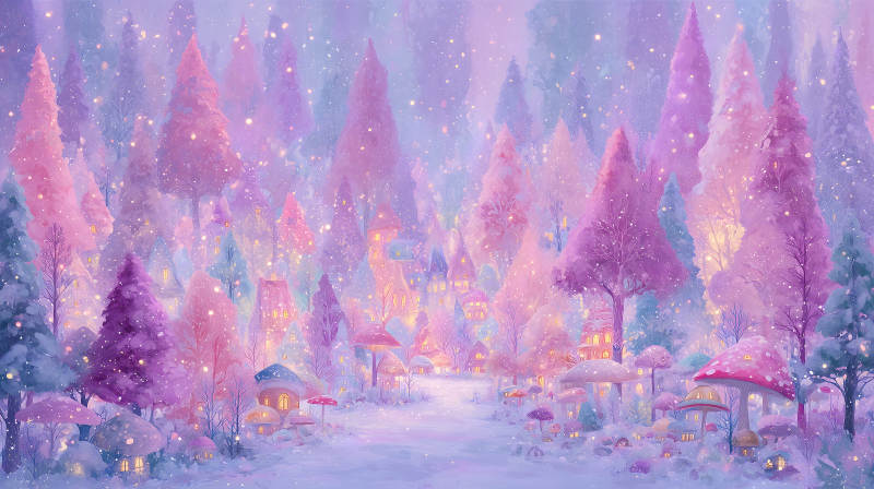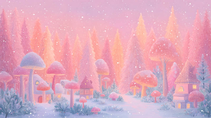 梦幻粉色森林冬日场景