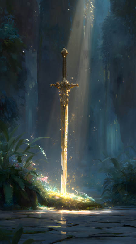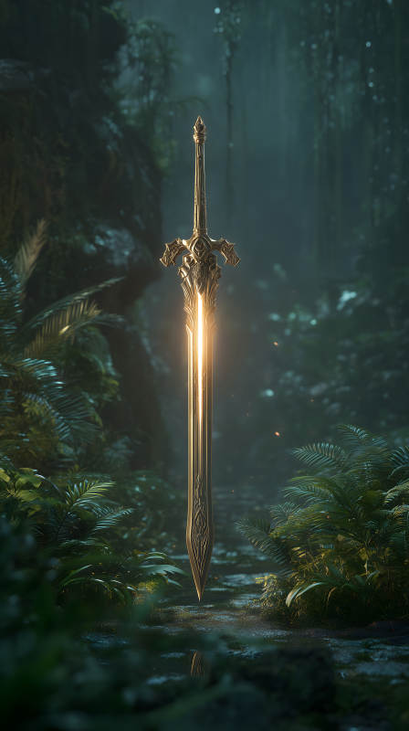丛林中发光的黄金剑