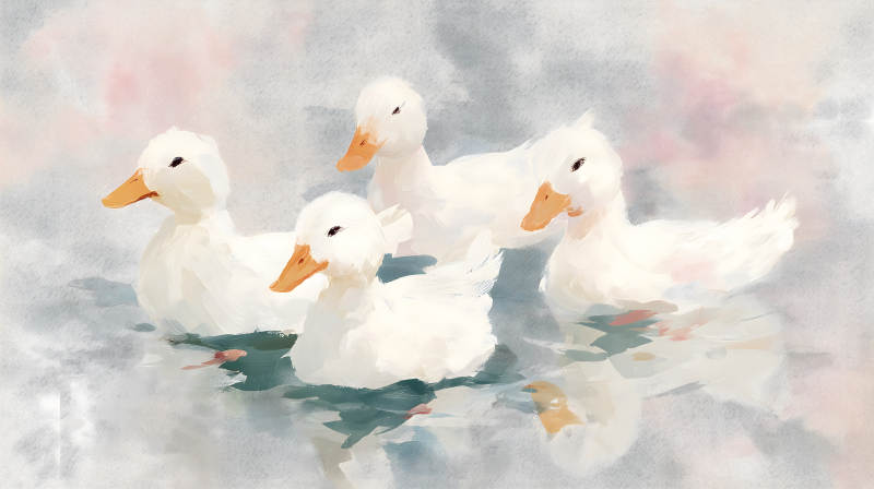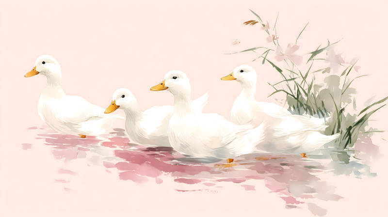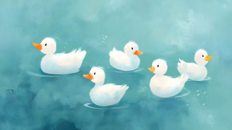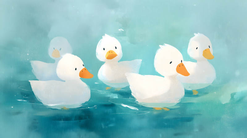 水鸭戏水绘画风可爱
