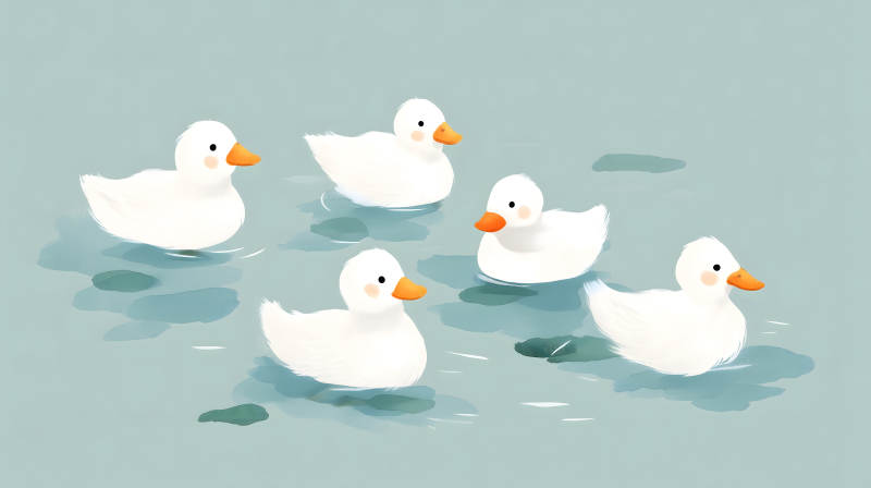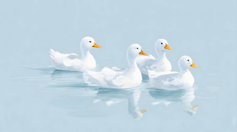 四只白鸭在水中游动