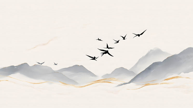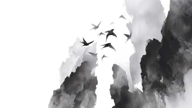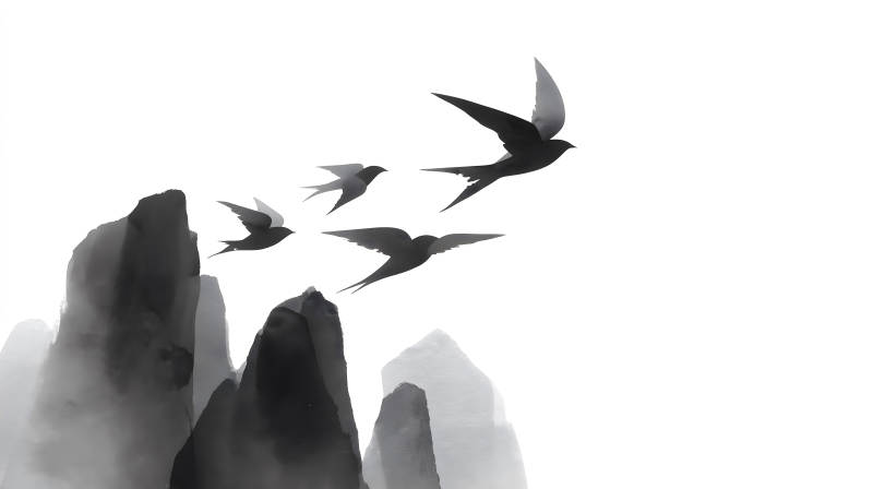 水墨意境鸟儿飞翔图