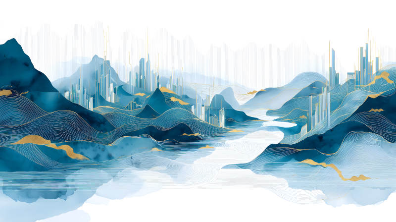 水墨山水城市风光画