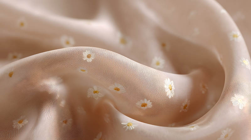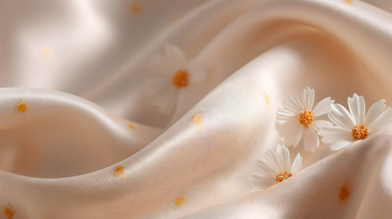 米色底绣有雏菊的丝绸面料