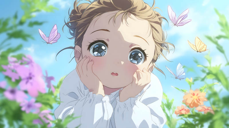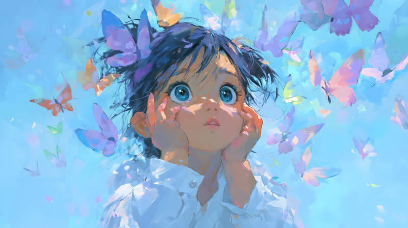 女孩与蝴蝶共舞的梦幻景象