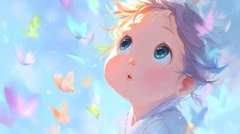 可爱宝宝仰望蝴蝶飞舞