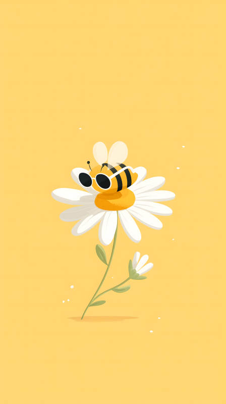 戴墨镜的蜜蜂停在雏菊上