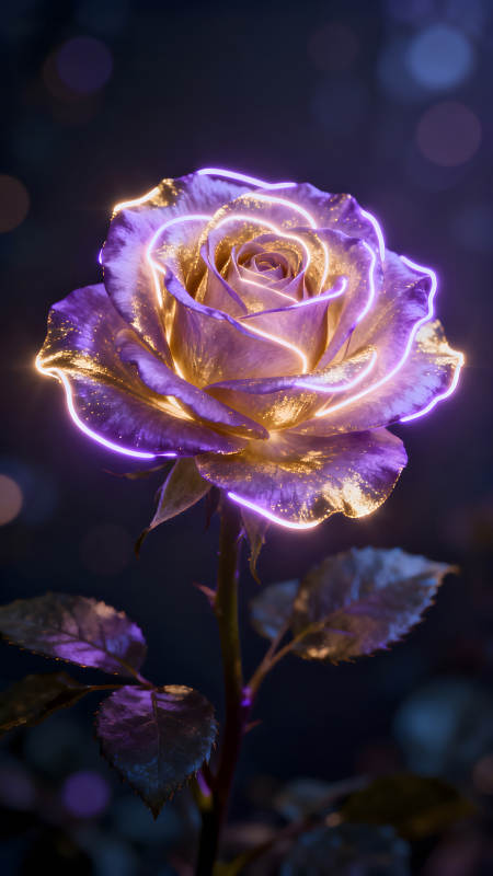 发光玫瑰花朵在深色背景下绽放