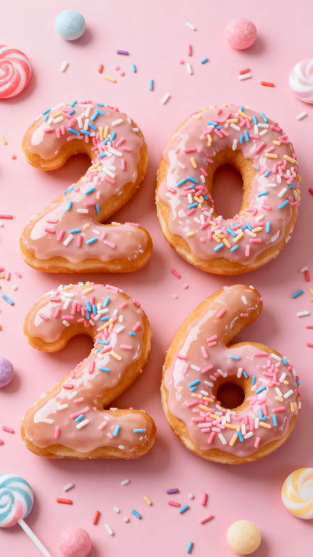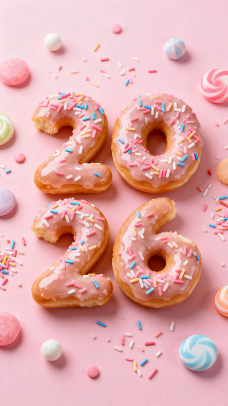 甜甜圈组成的26数字庆祝生日