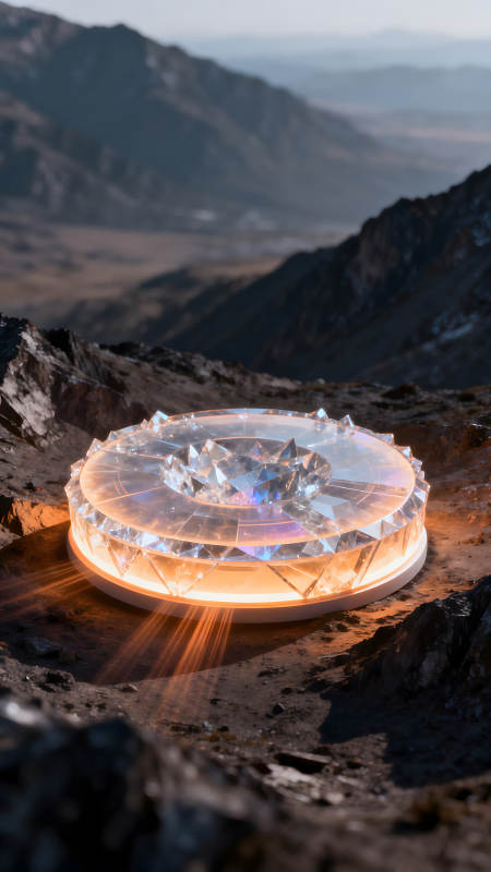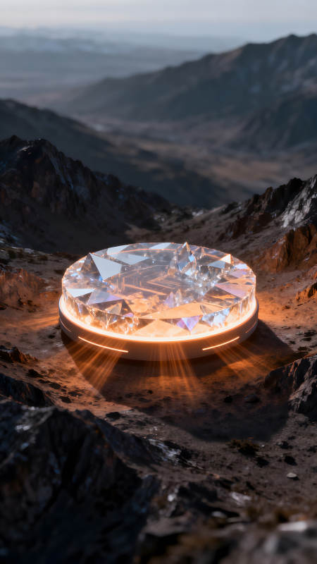 未来科技水晶光芒照亮崎岖山脉