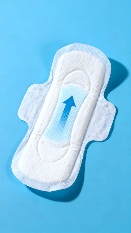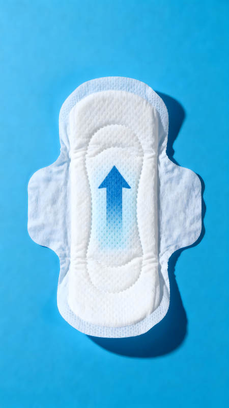 卫生巾特写蓝色背景吸收方向