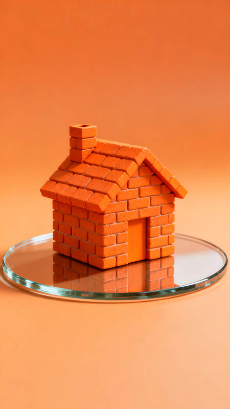 橙色砖房置于玻璃盘上